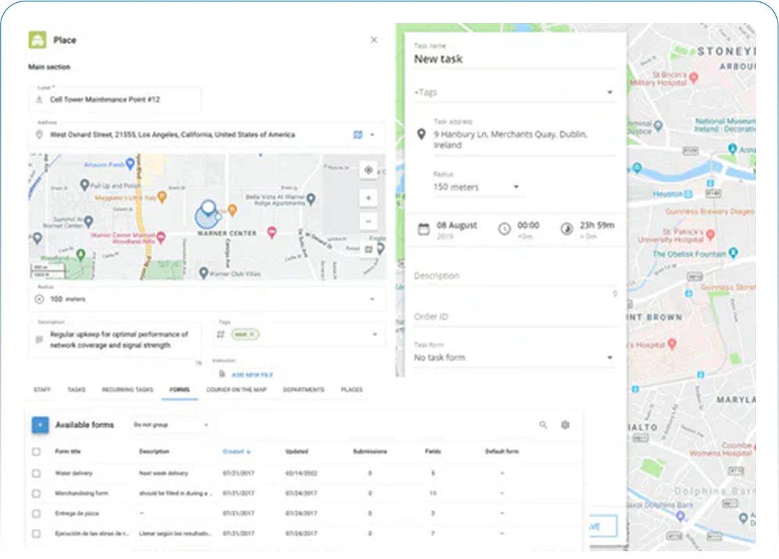View tasks as an interactive table, on a map, or through a timeline for comprehensive task scheduling.
